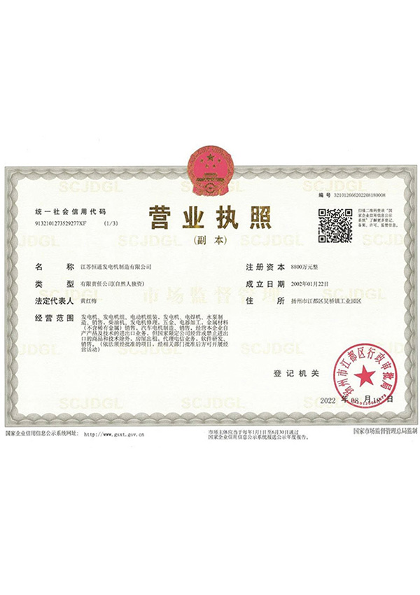 江蘇恒通發(fā)電機(jī)制造有限公司